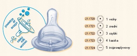 - 1x smoczek do butelki szeroki 6m+ poziom 2 średni