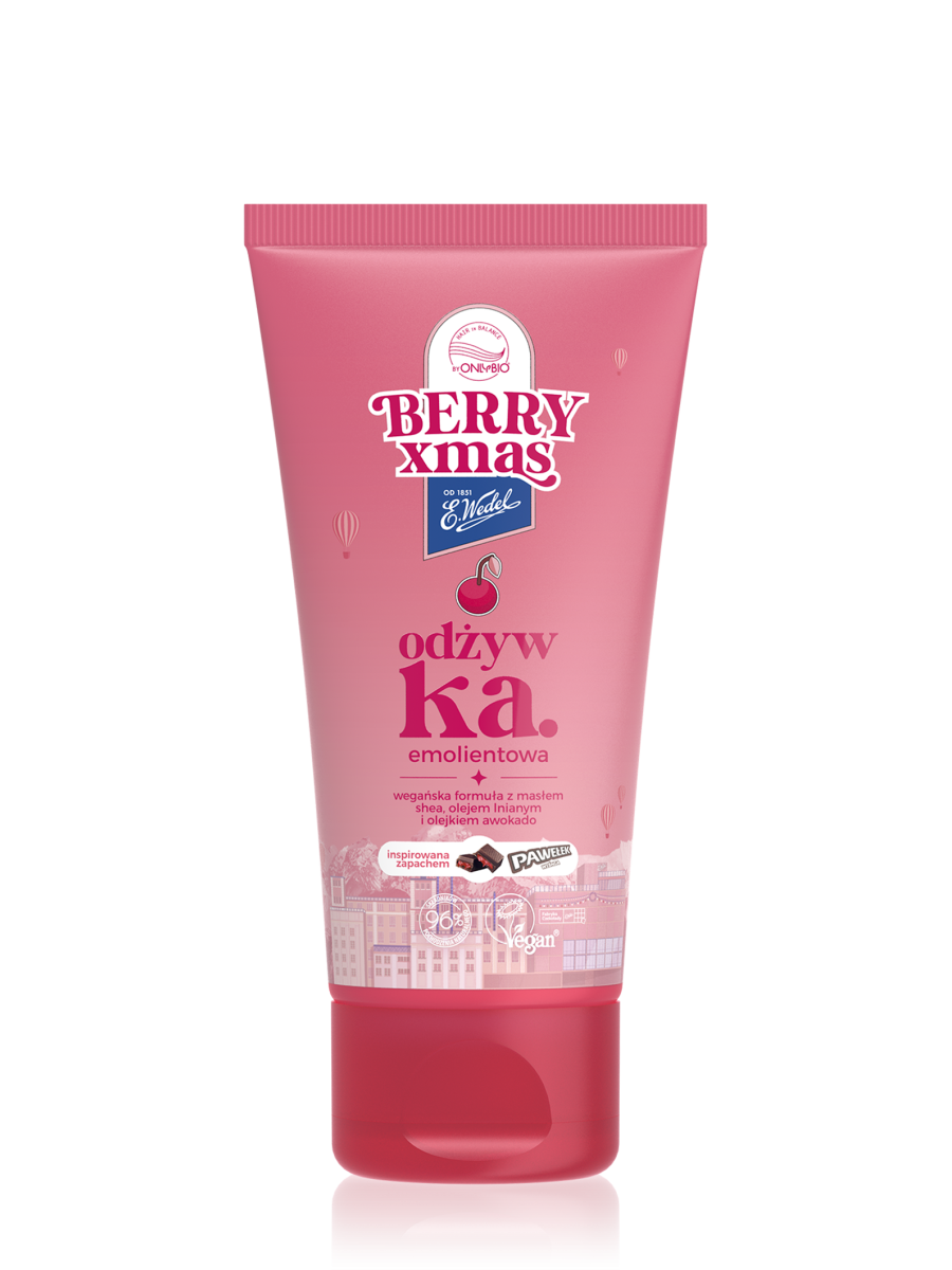 Pachnie intensywnie - jak czekolada, soczyste wiśnie i odrobina szaleństwa. To aromat śmiechu, spontaniczności i chwil, które aż proszą się, by uchwycić je na stories! It’s time… for berry soft hair! OnlyBio i E.Wedel przeniosą Cię do świata soczystych świąt, gdzie zamiast klasyki jest owocowa zabawa, a zapachy kuszą jak świąteczne słodkości. Wskocz w świąteczny mood z Berry xmas i Fabryką Czekolady E.Wedel! Odżywka emolientowa z linii Hair in Balance to nasze rozwiązanie dla szorstkich, puszących oraz plączących się włosów.