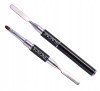 Z drugiej strony umieszczony jest pędzelek do pracy z żelami, akrylami. Pędzelek o zaokrąglonym włosiu idealny do nakładania i modelowania żelu na paznokciach. Pędzelek ze szpatułką zamknięty jest w ochronnym opakowaniu, które nie tylko ułatwia przechowywanie, ale również chroni włosie pędzelka przed ewentualnymi uszkodzeniami.