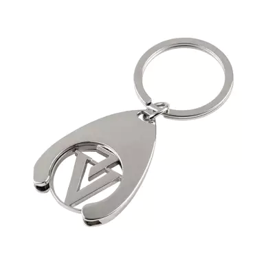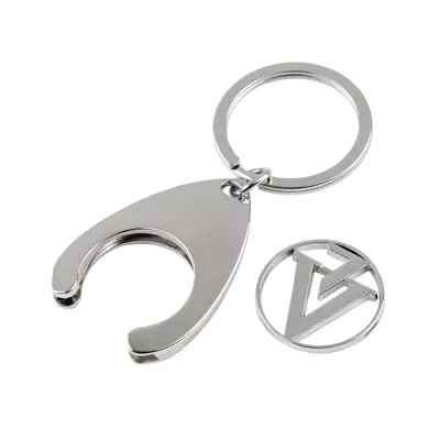 Metalowy brelok z żetonem do wózka z logo Victoria Vynn.